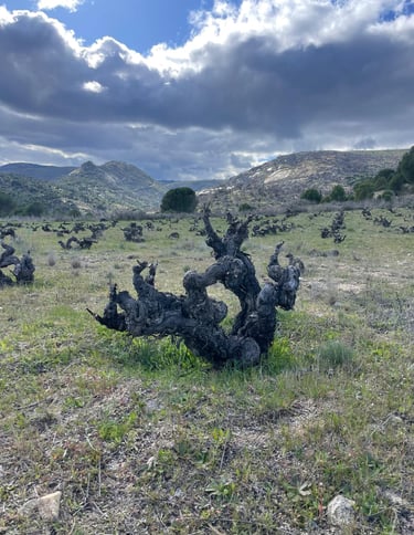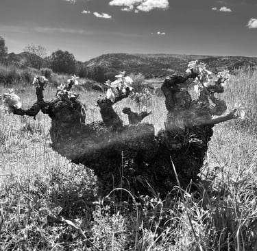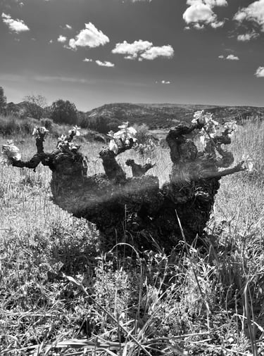 Nuestros viñedos están situados en un suelo muy pobre, donde la variedad garnacha florece, y sobrevive reflejando la esencia de nuestra tierra.